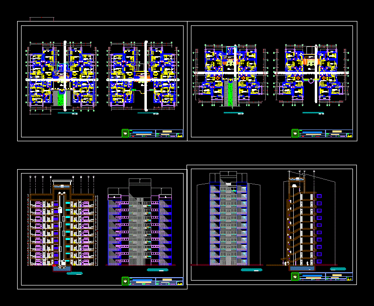 Building MULTIFAMILIAR - sizing different housing - plants - sections - elevations - Details