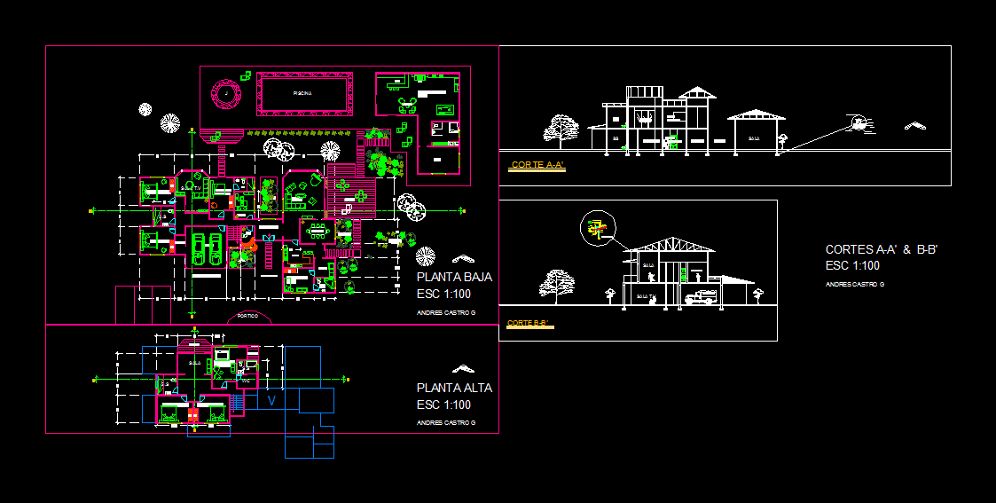Fully editable dwg, you can change all the drawings in the project together with everything else.