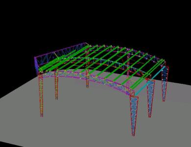 Metal frame - WA MIG 86 - E7018 paint corrosion zinc chromate 3 Mils Hatch for 2Mils enamel paint finish: standing seam simple design loads under LVD - 10 (Colombia): load life: 15kg/m2 50 kg/m2 live load wind load 150 kg/hour Intermedia