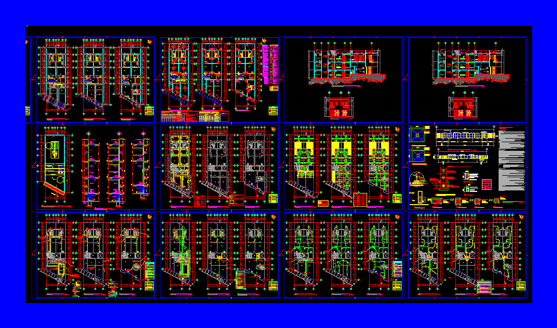The building has three sections Level 4 rooms per level. front doors and windows of the facilities at the level of structural plan preparation arquitectonicos levels
