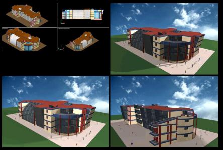 AutoCAD 3D modeling and rendering of Architecture from the school.