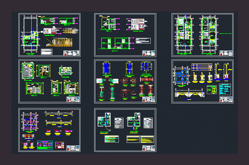 Affordable housing basic module: Module plants, the vertical and horizontal growth of plants, cuts, elevations, structural details, construction details, electrical and sanitary installations