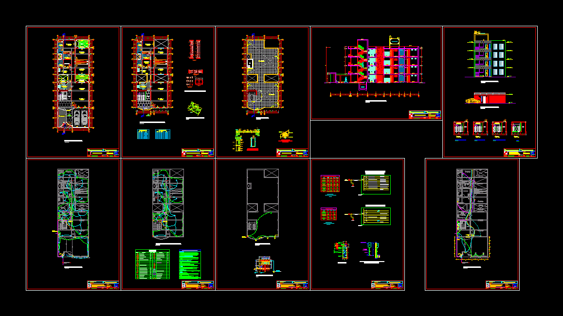 5 storey apartment building - ground - sections - details - dimensions - equipment