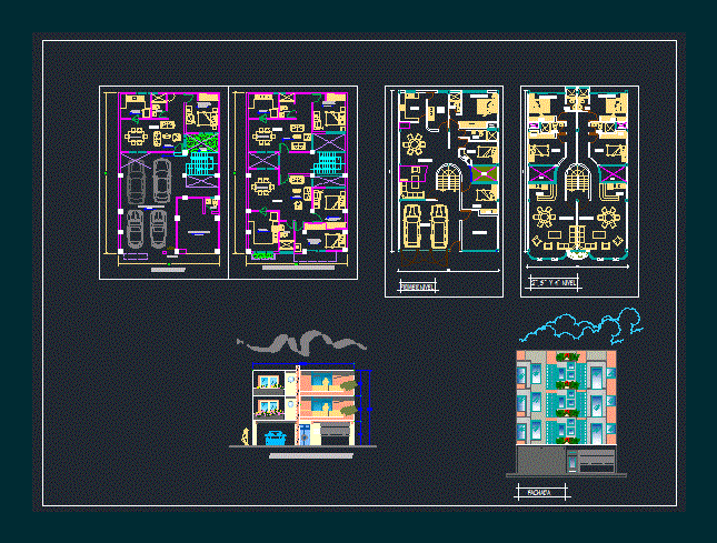 Architectural building floor Distribution two sections 10 x 16 m2 parking Rental. Plants - Impressions