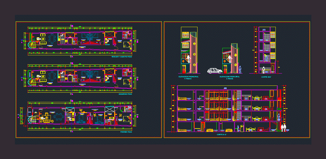 Multi-family home 4-it's a long story. Architectural drawings: sections and elevations plants