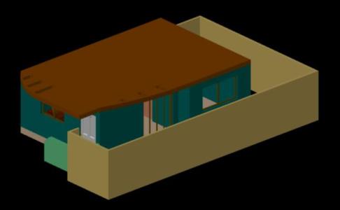 plant distribution as a basic place to stay 1/100, is shown with environments: living - dining - kitchen online, bedroom and 3/4 bathroom, internal yard. The flat roof. Wooden doors and windows