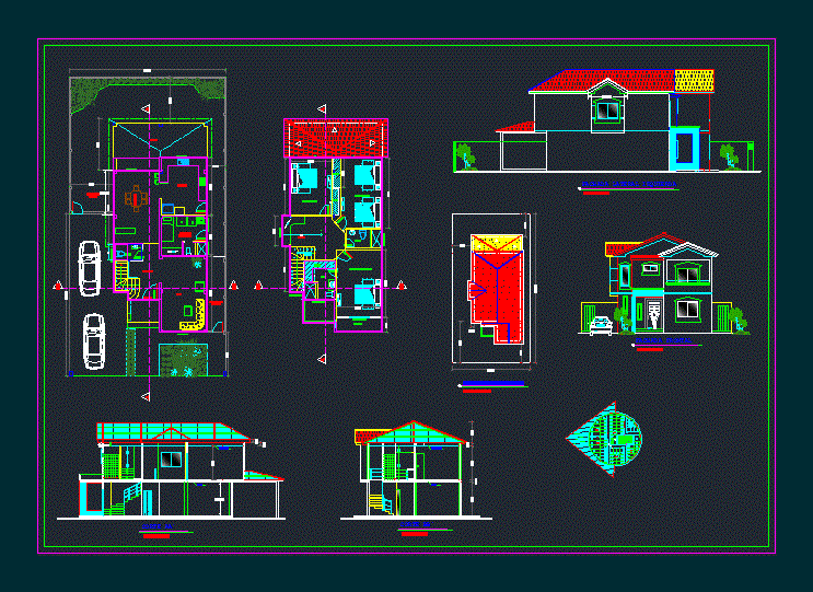 A map of architectural homes. Plants - Cortes - Views