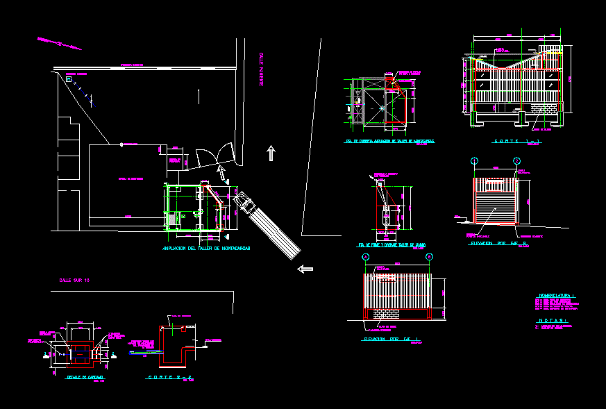 The machine shop side of the extension cover general representation of the crane plan and a sample depth Multipanel plant - soil - sections - details - Dimensions - equipment