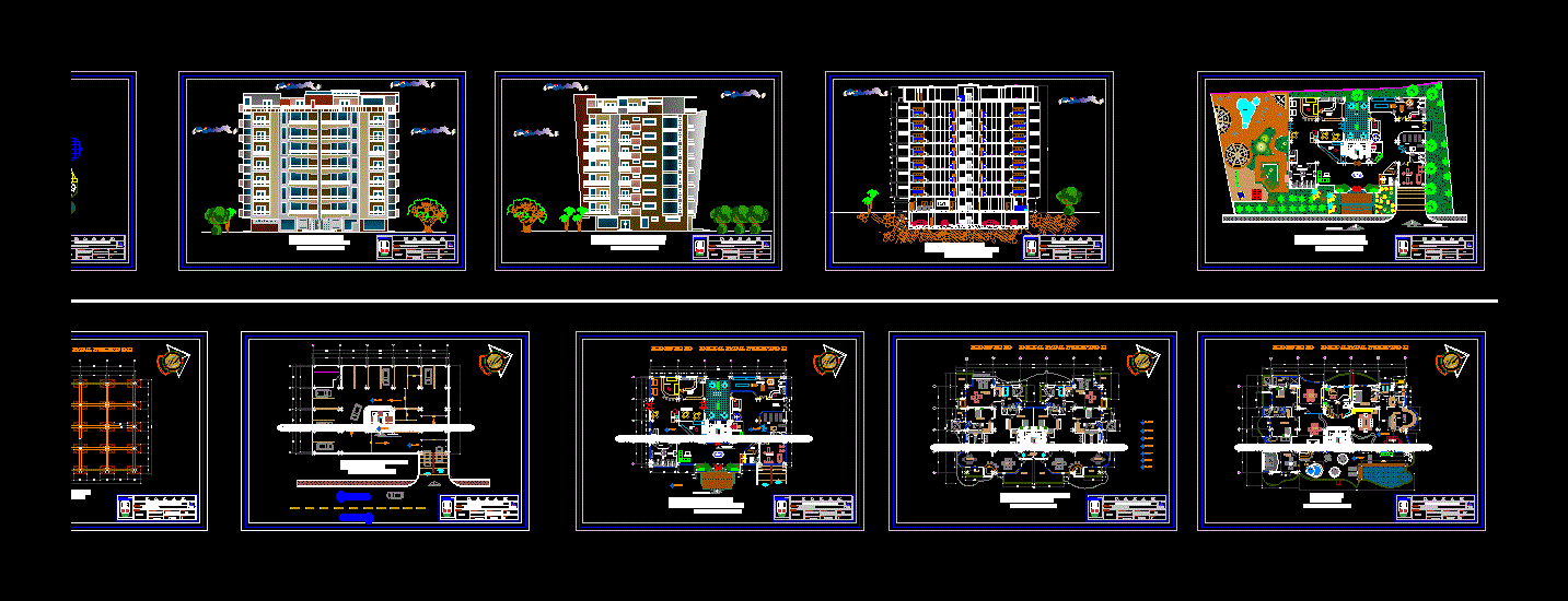 Architectural plans - plants - sections - facades - 7 levels - Terrace