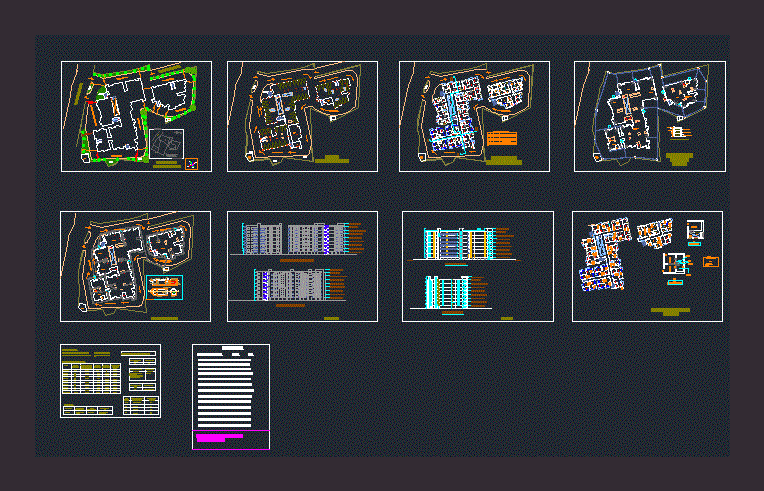 This is a seven-story multifamily housing - General Planimetria - base - Cortes - vistas building