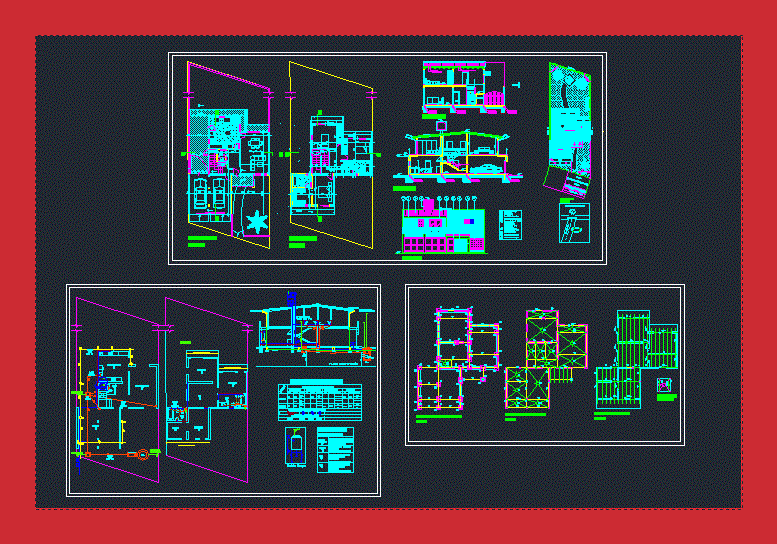 Plano homes two-story triple carport dormitorios toilet, bathroom, a full kitchen and living room. Architecture, structure, facades and cuts and health care facilities