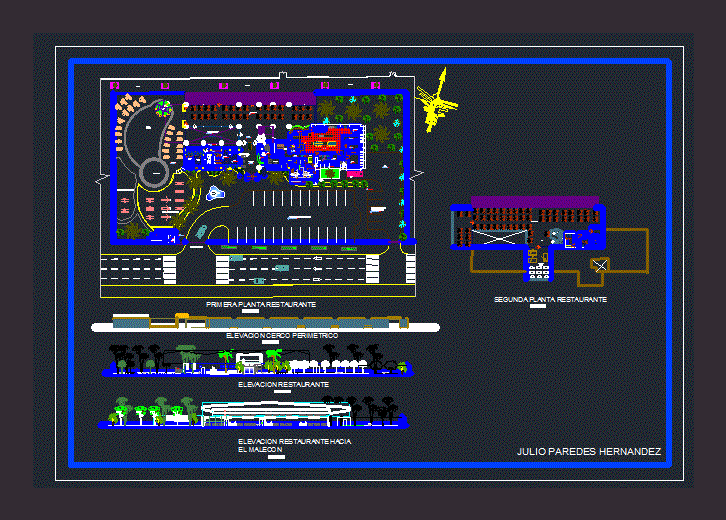 Fork tourist restaurants on the beach 3-plane architecture. -Plants - Cortes