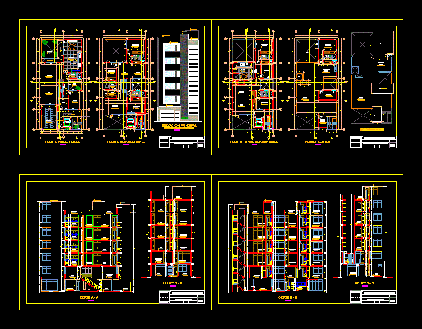 Multifamily electrical drawings, sanitary buildings, structures, and distribution 1 and 2 6 times, the architecture is different, and the third is typical of a plant. sections and elevations