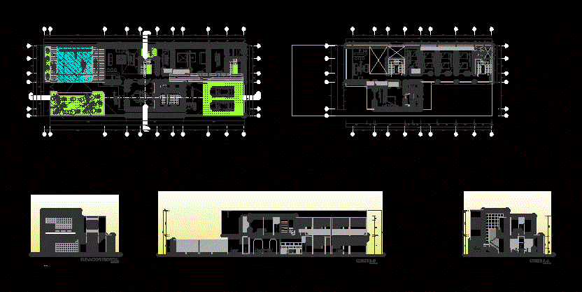 The two in the front beach house medianero 1 and the second-level floors, sections, and elevations
