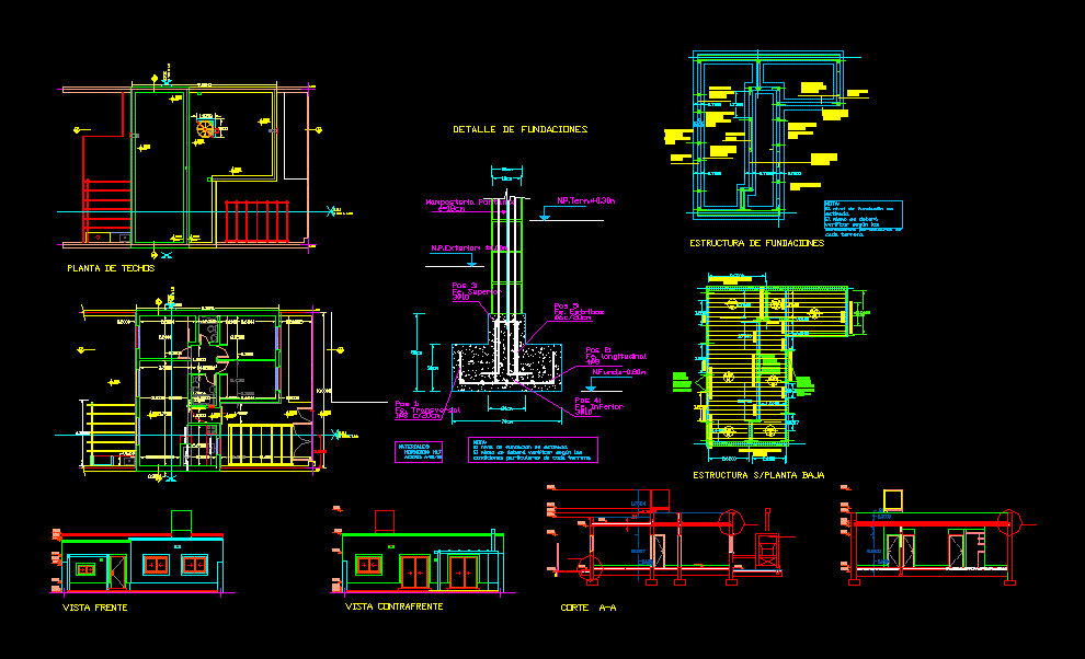 Housing a plant and three bedrooms, a social, dimension drawings, installations, cuts, details