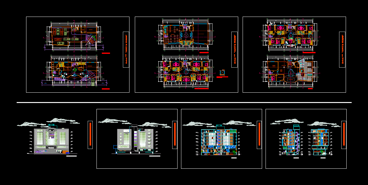 The Pilcomayo is a 3 star hotel County project setup. -Plants - sections - facades - Dimensions - specifying