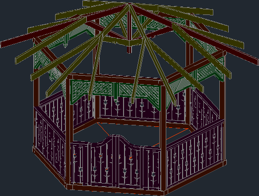 > A wooden pergola 3d