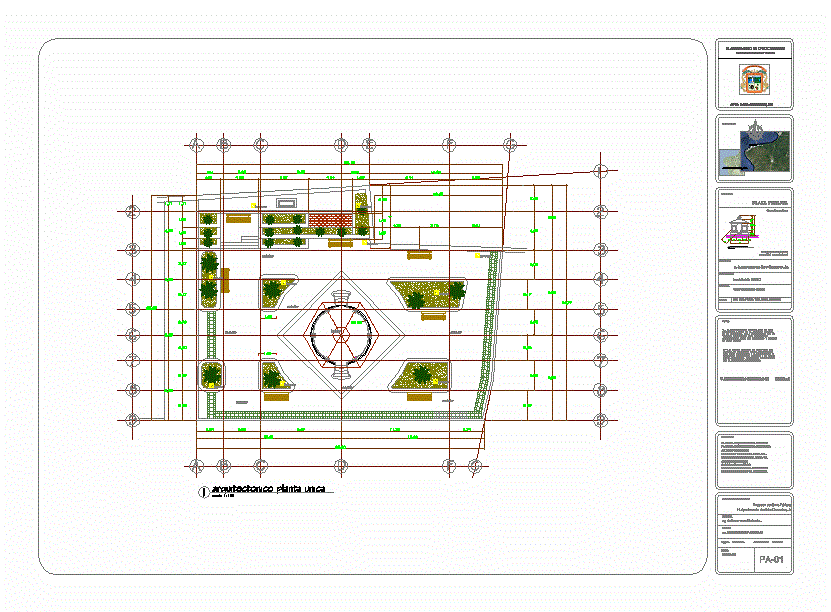 People's square - plant assembly plant, construction details, elevations, sections, details and architectural drawings of the kiosk and garden