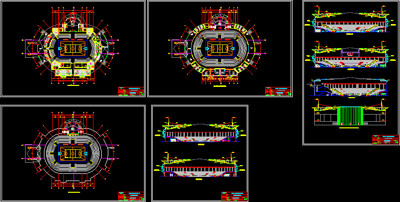 Peru, for the Pan American Games to be held in the file of the entire plant occurs complete and detailed architectural, sections, elevations and 3 levels for 5 axes coliseum project and structured