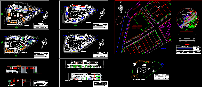 Elevaciones y cortes de un Plano strip mall ubicaci�n