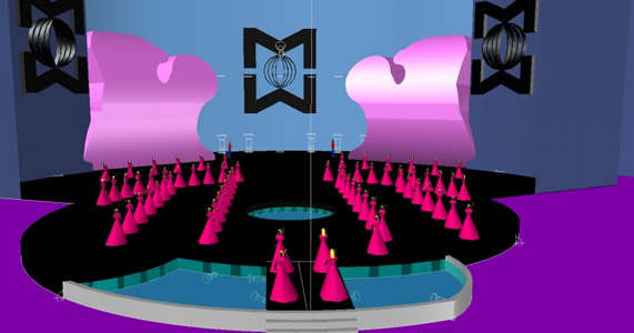 MISS WORLD BEAUTY PAGEANT A PLATFORM THAT INCLUDES THE AREA OF LIGHTING FOR STAGE DESIGN ARE MADE ACCORDING TO THE DIFFERENT LEVELS AND OPEN SOURCE MISSES THE JURY WHERE A LADDER BRIDGE IS APPROACHING. THE COMPETITION CAN BE SEEN IN THE FIRST FUND: SILHOU