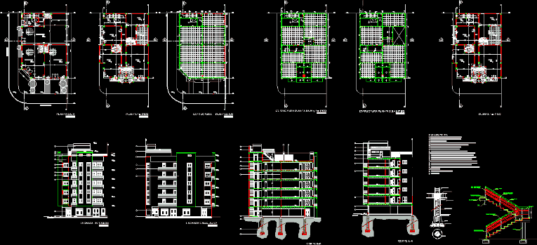 -sections - facades - Dimensions - specifying - 5 levels - Terrace accessible plans