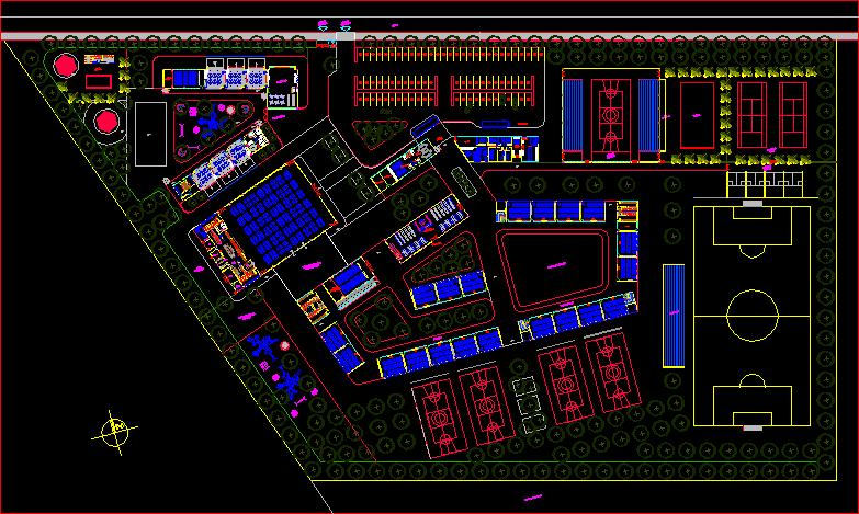 On the first floor plant and includes pre-school classrooms, elementary and high school administrative Coliseum area, pools, soccer field, tennis, Playground, multi-area, a kitchen and a dining room, library, parking areas, and parking 77