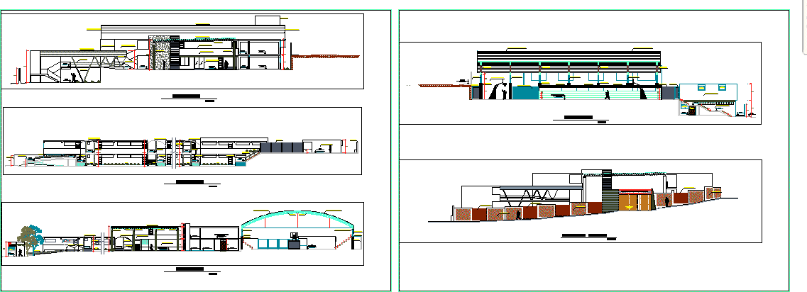 Plan, sections, elevations--intervention Vitaliano Becerra Herero school infrastructure.