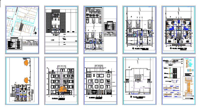 Multifamiliar 4 split floors and ceilings. plants, cuts, facades, structural, and structural details.
