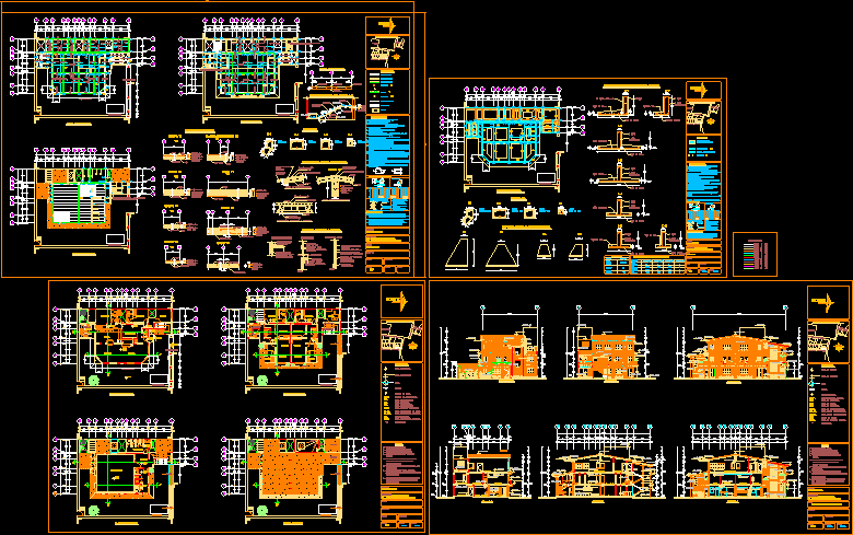 file. Dwg containing architectural drawings of a residence as facades, construction details, foundation, roof and wall cuts