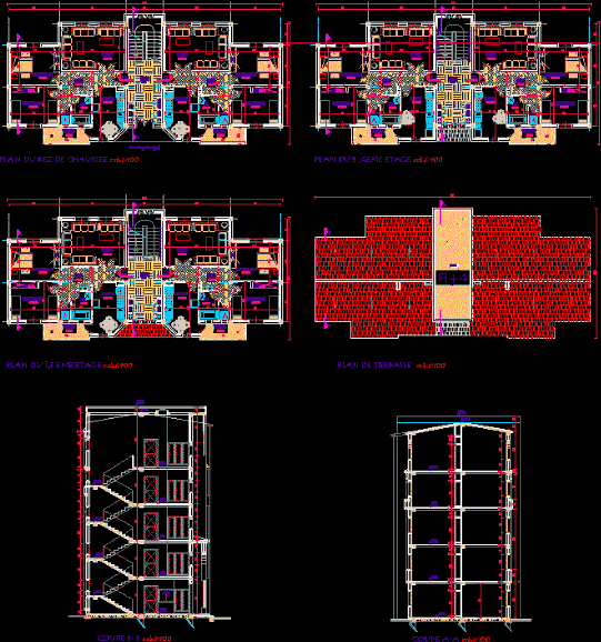 4th Floor - 2 bedroom apartments - plants - sections - dimensions - design creation