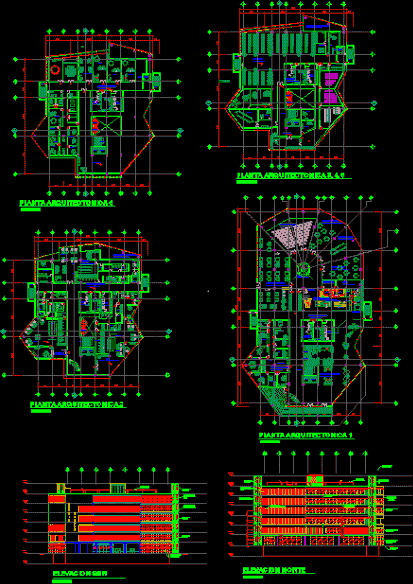 Includes Office Building - Convention Center, administrative offices, banks, art galleries, field, bleachers and the main lifts, emergency exit stairwell cover. Architectural plans, elevations and a draft of the proposal includes 2 vine plant
