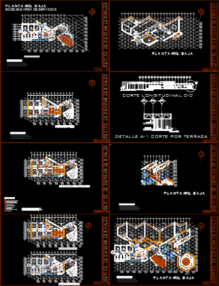 Architectural plans, elevations, and science portions of Sinaloa state, Mexico Central. Interactive science museum, a conference room, a planetarium laboratory - the exhibition areas.