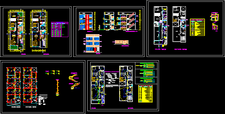 Multifamiliar architectural design home with three levels of a typical distribution. -Cortes - properties - symbology - Construction - plants construction details