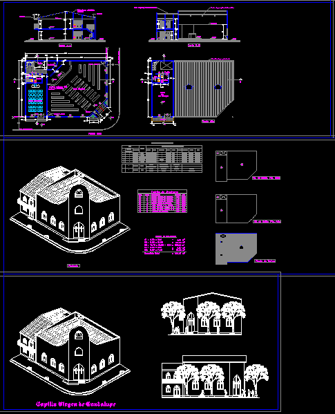 Chapel - plants - sections - Views - isometric