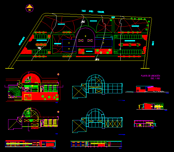 Draft Cultural Center - Domingo Savio City - Fernando de la Mora, Paraguay gives you. -Plant location, floor plans, elevations, sections - fold pattern.