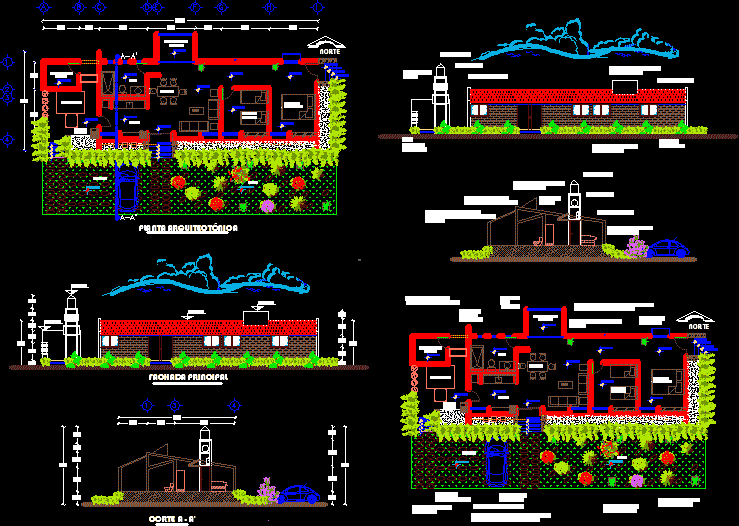 Eco - house- plans the FAA?ADE - inner section and a side view