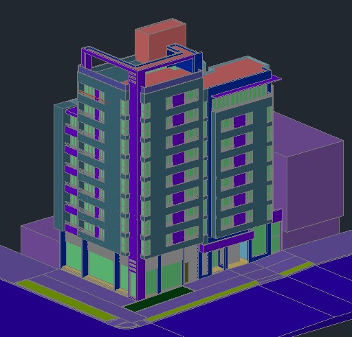 Detailed 3D exterior wall systems, input and external circulation. Windows, balconies and doorways are there. Appropriate measures for heights and a tower apartment.