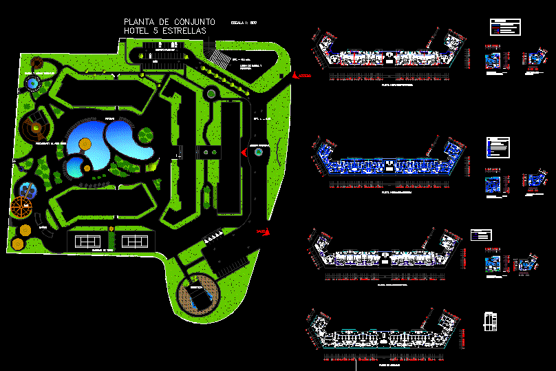 Hotel 5 stars - plants, architectures, assembly plant, plant equipment (Hydraulic, sanitary, electrical) coating plant - cuts, slits