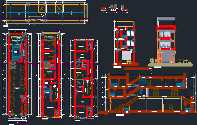 Shops with residential plans and sections. Dimensions and drawings approved by the municipality.
