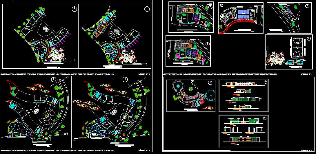 Community College, Concert Hall, Library, Management, base classes, secondary classrooms, cafeteria, and parking areas