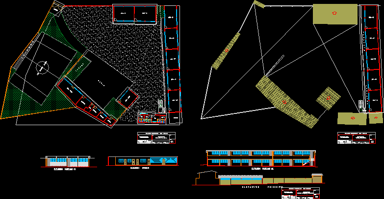 Central Private School of San Carlos general plan architectural plan and elevation and distribution of forest breaks.