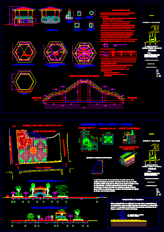 COLONIA Linda Vista PARK, kiosks, containers landscape, flagstone paving, lighting, stairs,
