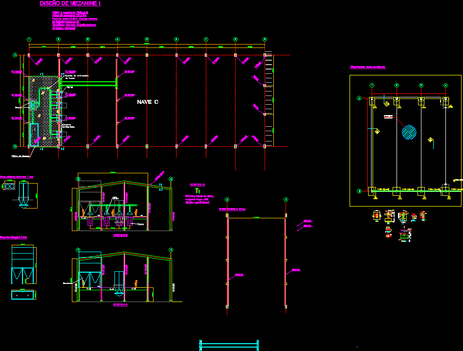 Bridge crane plan view and elevation of a proposed mezzanine storage