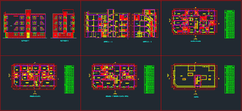 Multi - architectural plans. plants, elevations, sections, location and pictures to complete the level