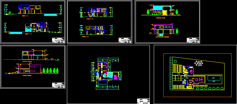 The two - storey pool house, sections and elevations