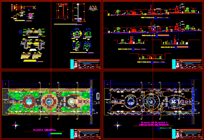 Plaza Park - ground features, elevations and details on the slopes, recreation areas, planters, recreation and recreation areas, three water fountains.