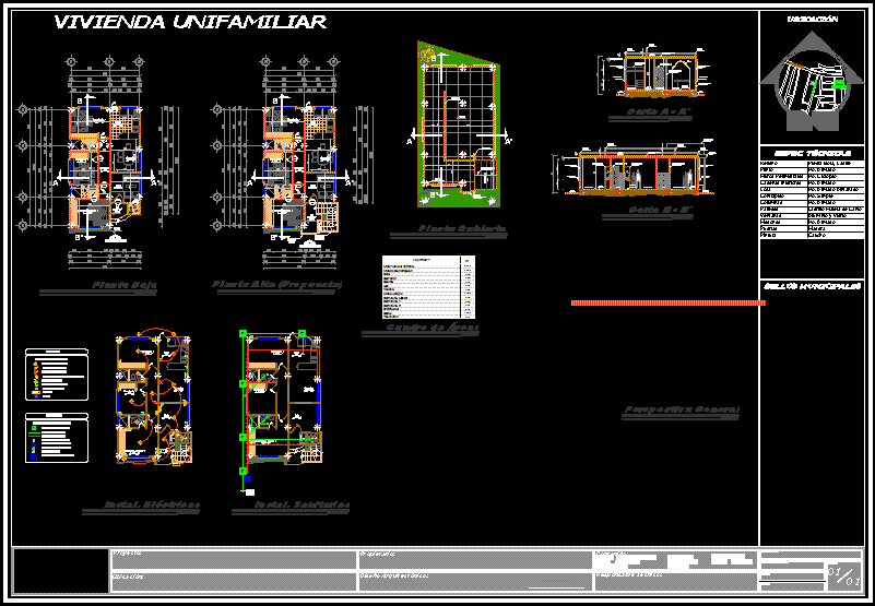 Plumbing installations, electrical installations, general architectural plan, second floor, sections, elevations, perspectives and renderings proposed.