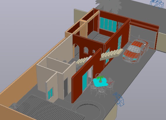 The rooms of the House, pool and BBQ pergola, carport with garden in 2005 Jetta the person sitting at the table in three sizes and materials