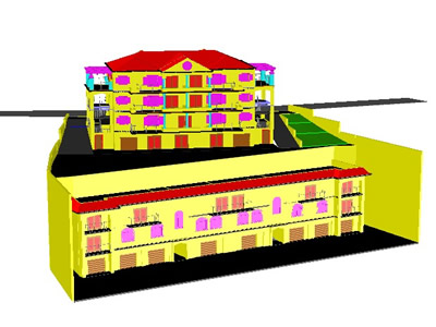 > Multifamily, low-level, 3-bedroom duplex townhouses in 3D